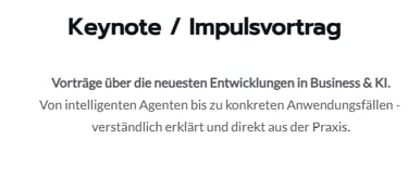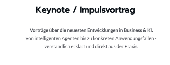 In Keynotes, Impulsvorträgen und Workshops zeige ich Unternehmen und Teams, wie Künstliche Intelligenz heute realistisch, sinnvoll und sicher eingesetzt wird. Besonderer Fokus liegt hier auf Marketing, Growth und GoToMarket-Teams.